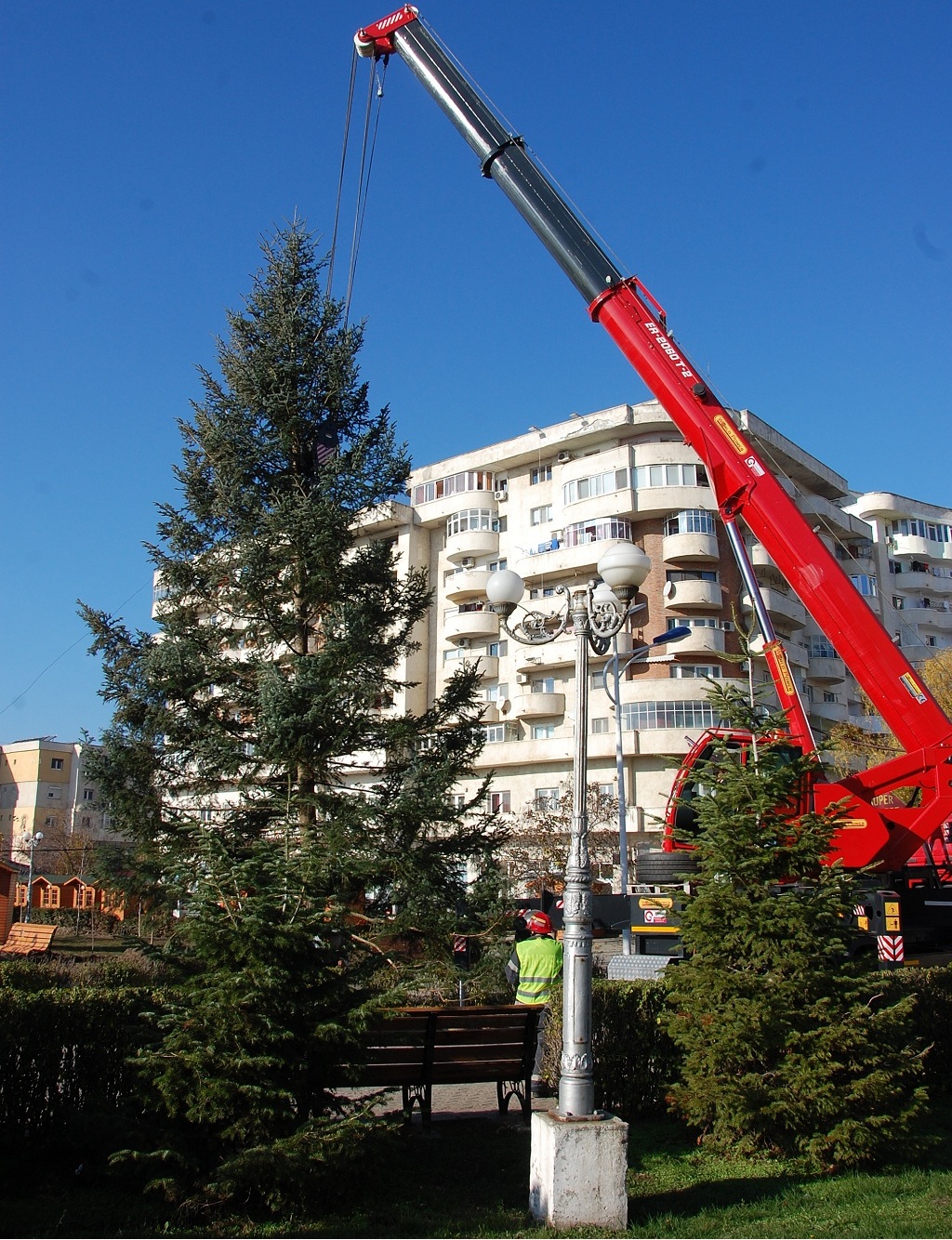 Marţi, 27 noiembrie bradul achiziţionat de municipalitate de la Ocolul Silvic Gura Teghii, din judeţul Buzău, a ajuns în municipiu, la scurt timp după miezul nopţii. Copacul cu o vârstă de circa 20 de ani şi cu o lungime de aproximativ 15 metri a fost adus astăzi în jurul prânzului în locaţia stabilită de Primăria Giurgiu pentru a deveni centrul manifestărilor dedicate sărbătorilor de iarnă, şi anume Parcul Mihai Viteazul. Sub atenta supraveghere a directorului Societăţii Întreţinerea Peisagistică a Spaţiilor Verzi, Eugen Dumitru, copacul a fost ridicat din autocamionul în care a fost transportat şi instalat, cu ajutorul unei macarale puse la dispoziţie de ISU Giurgiu.
