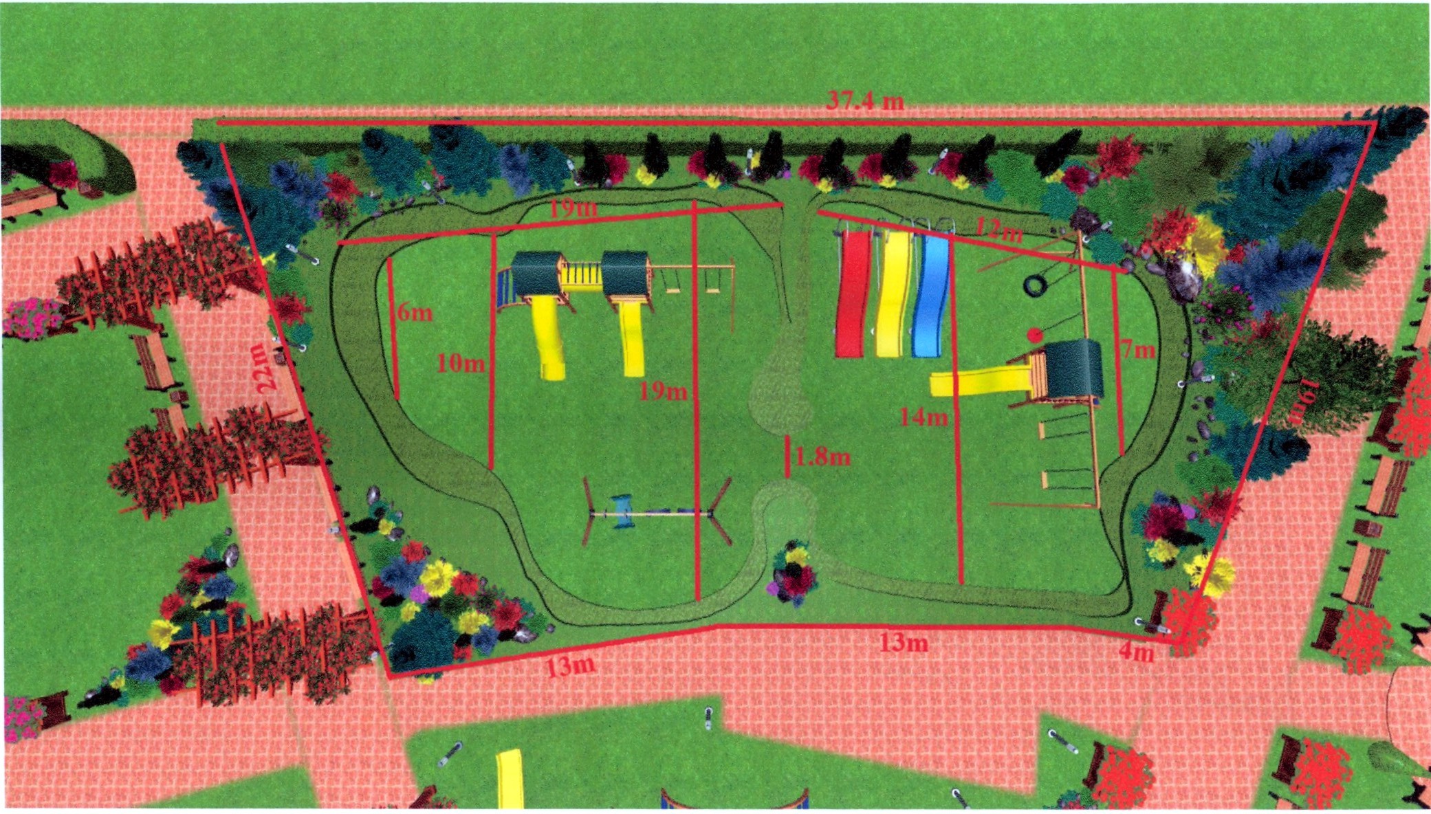 În ceea ce priveşte construirea noului spaţiu de joacă, acesta va cuprinde două alveole, una pentru copiii cu vârstă cuprinsă între doi şi cinci ani, iar cealaltă pentru copii între cinci şi 12 ani. Pentru protecţia şi siguranţa copiilor, pe toată lungimea spaţiului de joacă va fi montat un gard din plexiglass cu inserţii reprezentând diverse figurine şi personaje din desene animate. Mobilierul vechi va fi montat în Parcul Elevilor, după ce va fi recondiţionat.