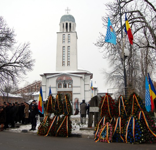 Omagierea eroilor revoluţiei a continuat la Monumentul „Eroii Revoluţiei” de pe şoseaua Bucureşti. Evenimentul s-a încheiat prin defilarea Gărzii de Onoare.