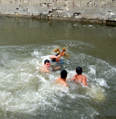După sfinţirea apei Dunării a fost aruncată crucea, recuperată anul acesta de Iulian Cimpoieru, de 39 de ani. Atât el cât şi ceilalţi patru curajoşi care s-au aruncat în apa rece a Dunării au fost premiaţi de municipalitate cu sume de bani, dar şi de către Episcopia Giurgiului care le-a oferit vin bisericesc, icoane şi cărţi sfinte.