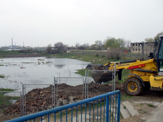 “A fost constatată fisurarea produsă la baza unei conducte de apă pluvială care trece prin această zonă, fisură provocată de diferența de nivel mare dintre canal și baza conductei, de circa 5 metri, și s-a trecut la obturarea acesteia. Lucrăm cu două utilaje de încărcare, două buldoexcavatoare dar și două basculante și estimăm ca în 2-3 ore să finalizm”, a declarat Ionel Sevastian, directorul Societății Comerciale Giurgiu Servicii Locale SA.