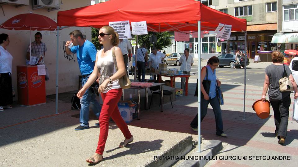 Având în vedere atenţionarea meteorologică de cod portocaliu de caniculă, valabilă marţi, 30 iulie 2013, pentru judeţul Giurgiu, când se vor înregistra temperaturi de peste 40 de grade Celsius la umbră, iar indicele de temperatură-umezeală va depăşi pragul critic al disconfortului termic de 80 unităţi, Primăria Municipiului Giurgiu, prin Serviciul Voluntar pentru Situaţii de Urgenţă, vine în sprijinul populaţiei asigurând mai multe puncte de distribuire a apei potabile.