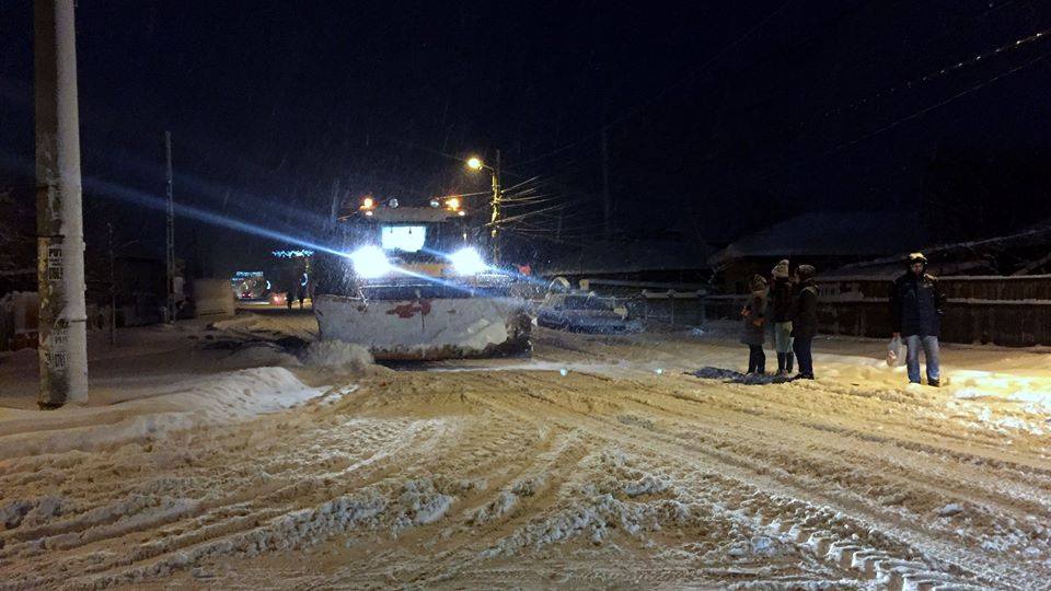 Conform conducerii GSL se asteapta oprirea ninsorii pentru imprasiterea cu material antiderapant si se va lucra si astazi la indepartarea zapezii de pe carosabil si trotuare.