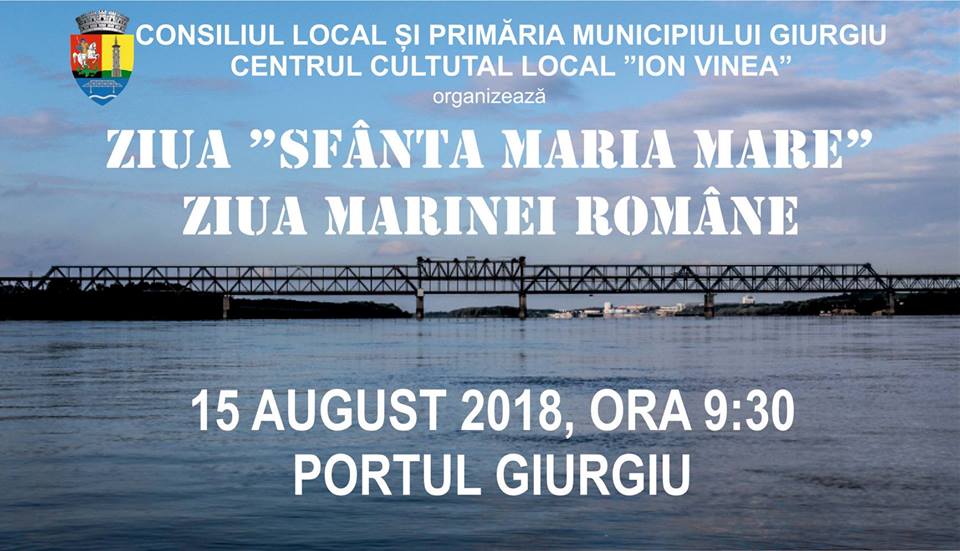 Giurgiuvenii sunt invitați mâine, 15 august, în Port, să ia parte alături de oficialități la manifestările dedicate sărbătorii Sfintei Maria Mare și a Zilei Marinei Române.