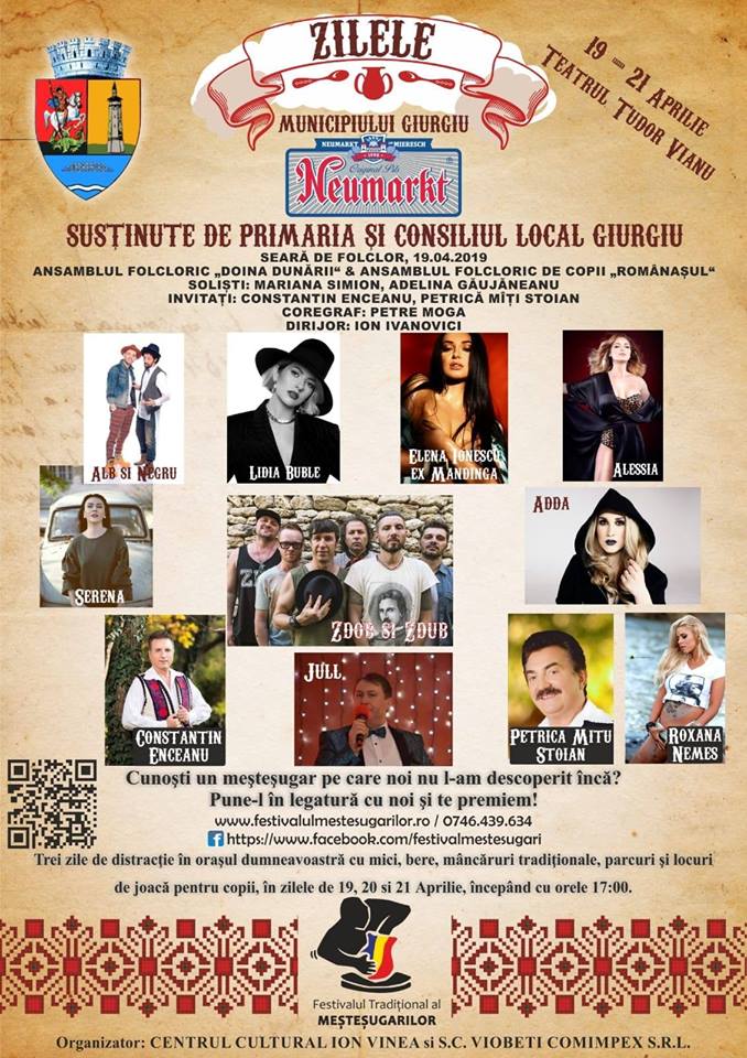 În data de 21 aprilie, ultima zi de spectacole dedicate Zilelor Municipiului Giurgiu vor urca pe scenă: