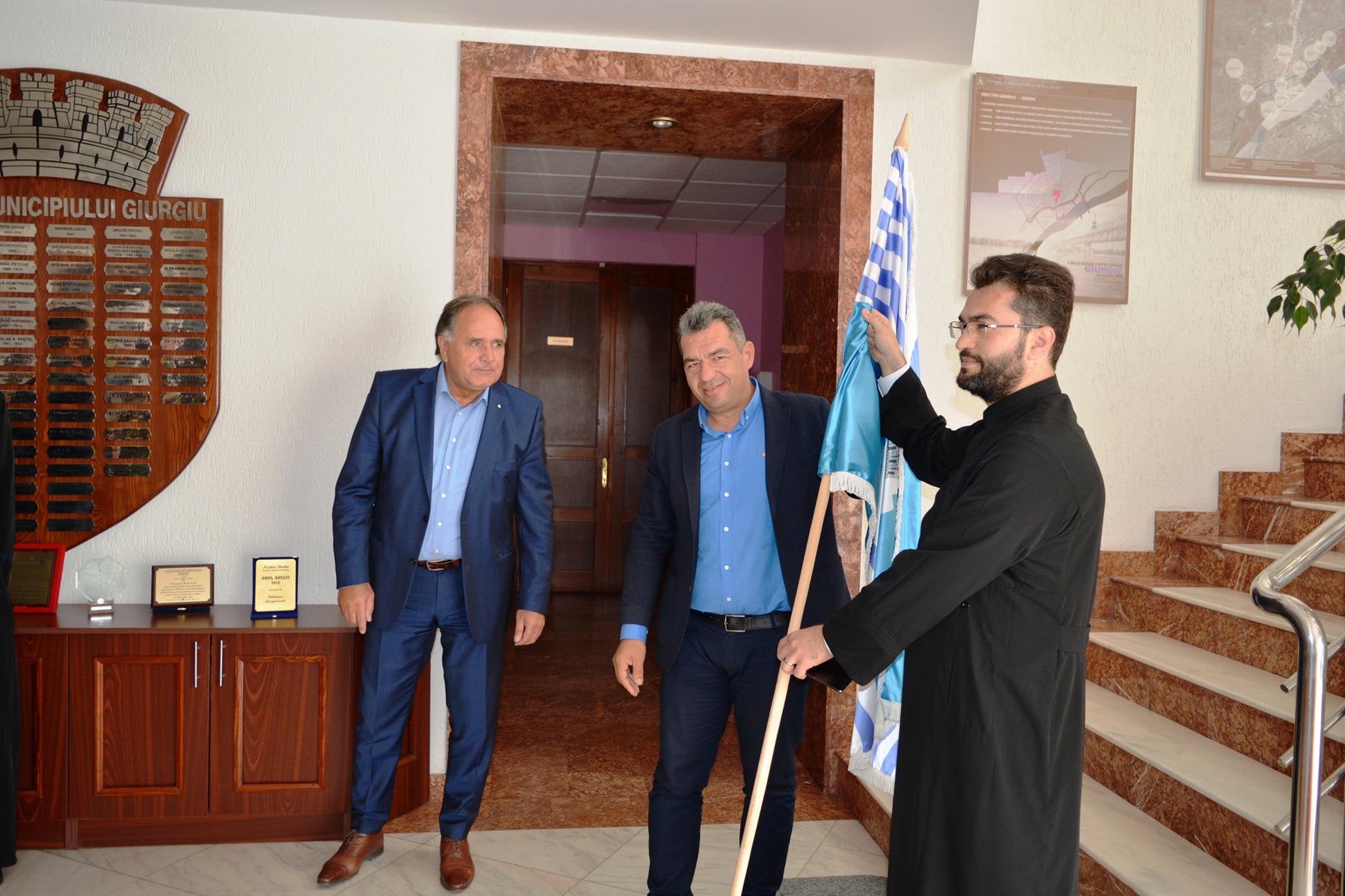 Acestia au participat, astăzi 5 septembrie, la Sfânta Liturghie de la Catedrala ”Adormirea Maicii Domnului”, primind apoi Binecuvantarea Preasfințitului Părinte Ambrozie și steagul Eparhiei. Următoarea oprire a fost la Primăria Municipiului Giurgiu unde au fost întâmpinați de viceprimarul Ionuț Cioacă și administratorul public Niculae Ghiță, fiindu-le înmânat steagul orasului, ambele fiind purtate de reprezentantii Episcopiei Giurgiu pe tot parcursul întâlnirii de la Craiova.