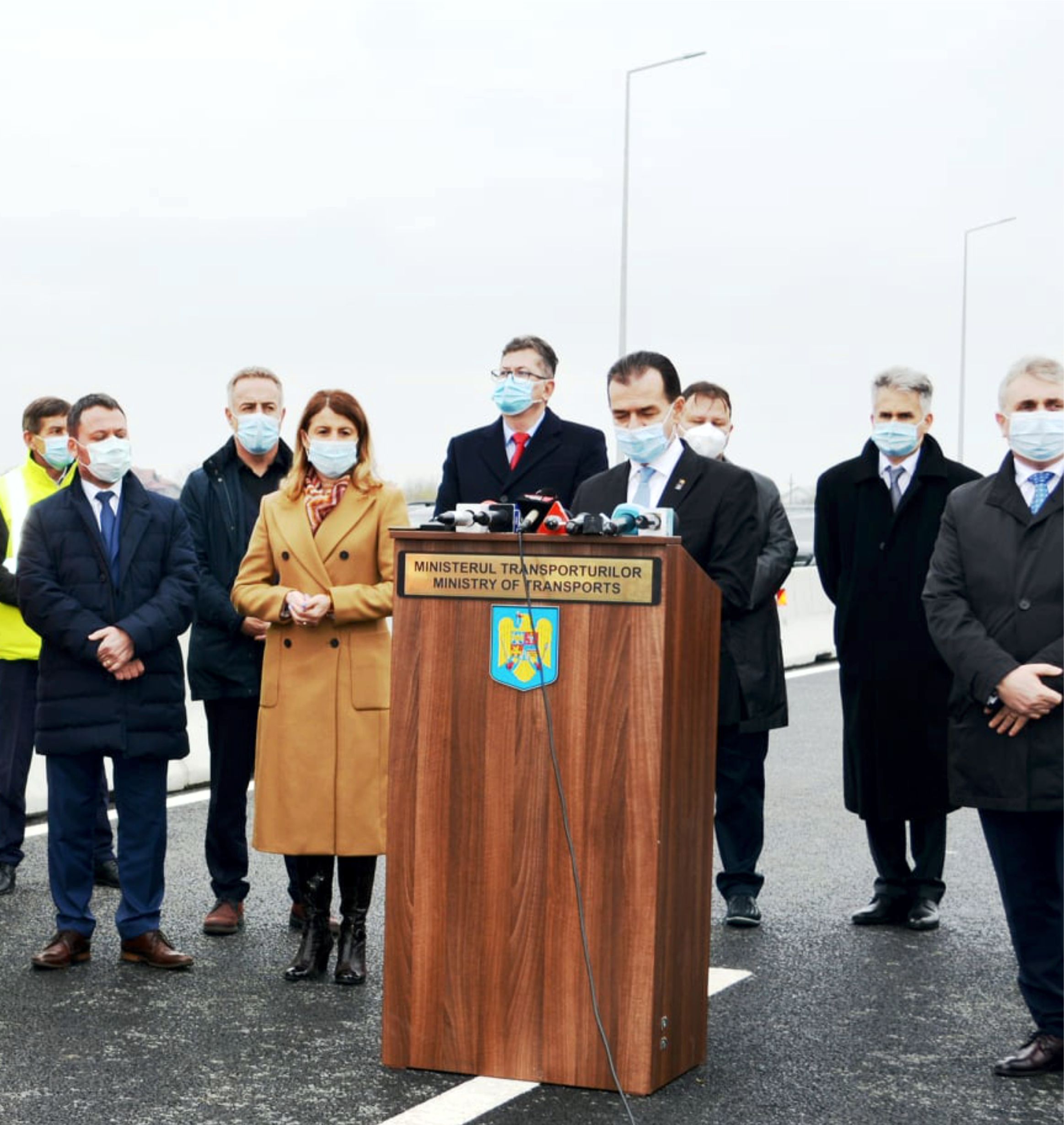 Podul a fost inaugurat astăzi, în prezența premierului Ludovic Orban și a ministrului Transporturilor, Lucian Bode.