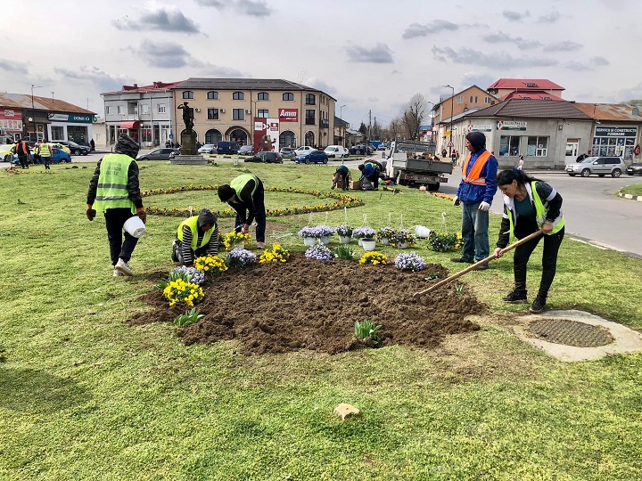 concomitent cu activităţile de curăţare a parcurilor, a locurilor de joacă şi a cimitirelor, a început plantarea firelor de flori în sensurile giratorii din municipiu.