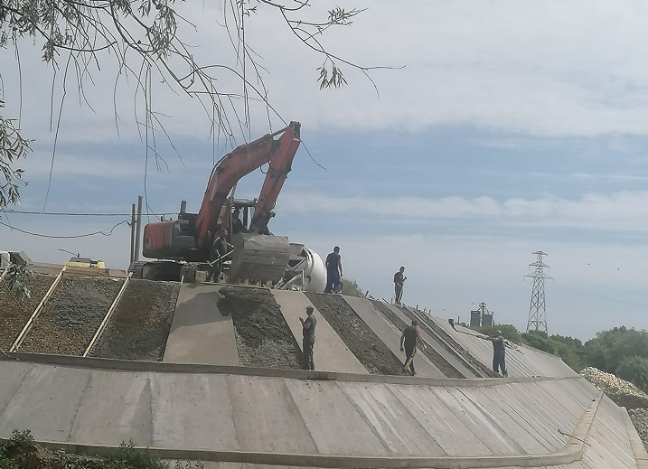 Ieri, lucrările erau în plină desfășurare, iar potrivit constructorului, în această săptămână va fi finalizată cea de-a treia parte a pereului cu dale de beton