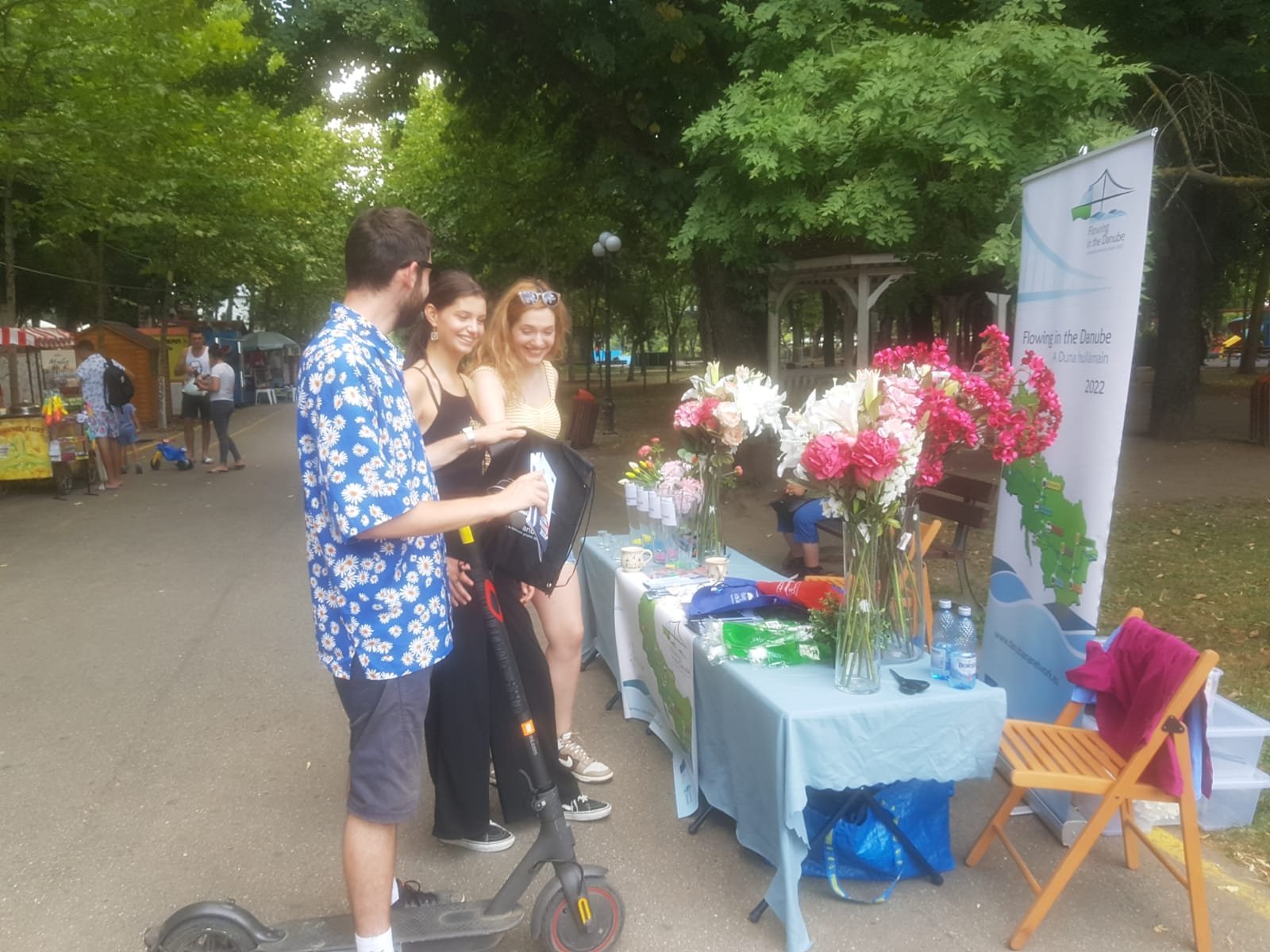 Parcul Alei din municipiul Giurgiu a găzduit, duminică 17 iulie, pentru câteva ore, un stand de informare a proiectului ”Flowing in the Danube”
