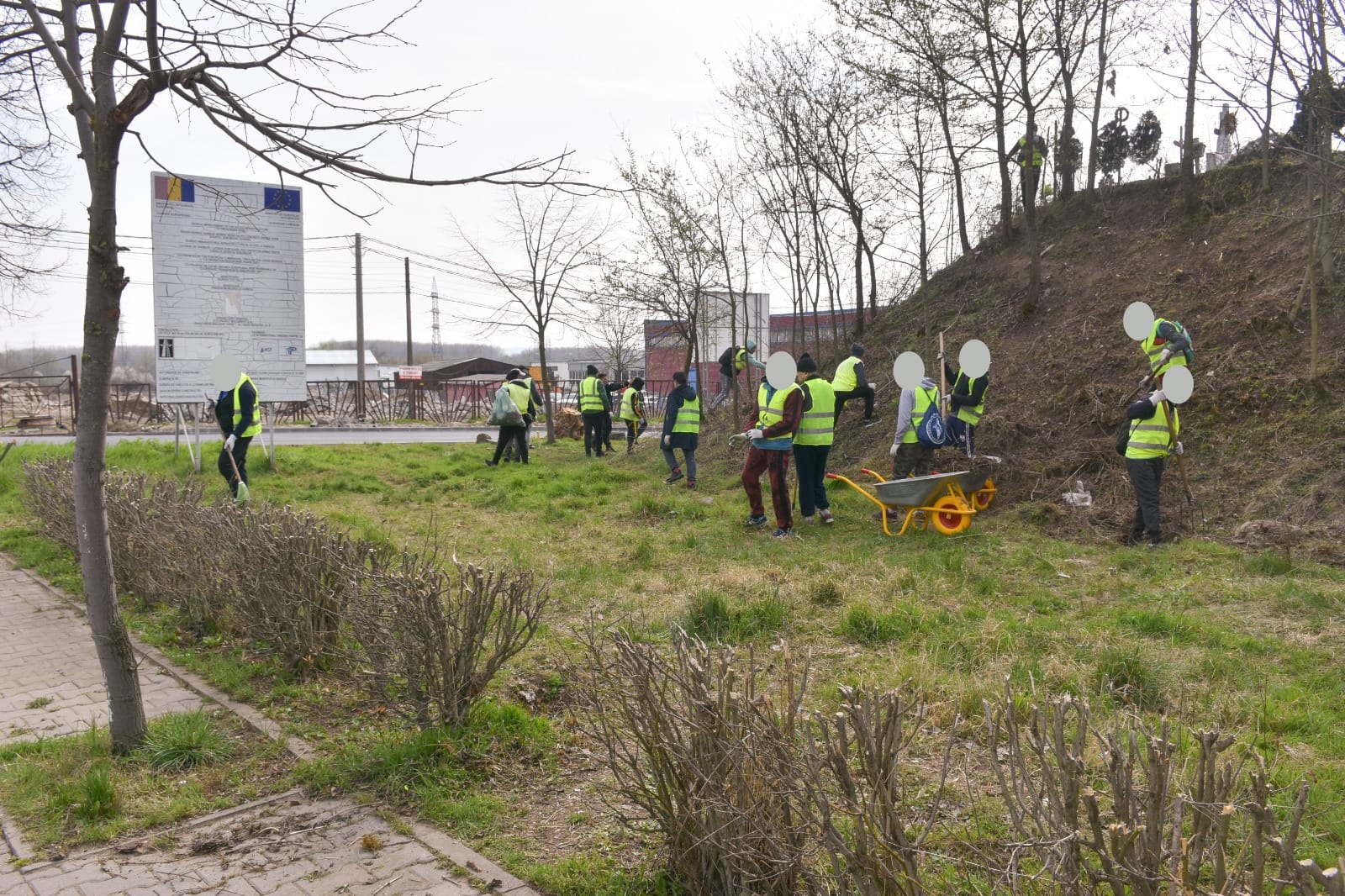 Zeci de saci cu gunoi și vegetație uscată au fost adunați de 19 persoane private de libertate care au greblat, strâns gunoiul și cărat vegetația spre a fi ridicată de mașinile de la salubritate.