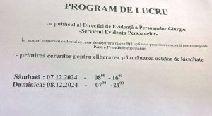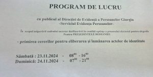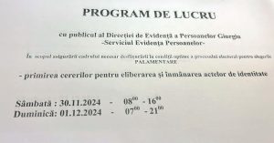 Programul de lucru cu publicul al Direcției de Evidență a Persoanelor în perioada desfășurării procesului electoral.