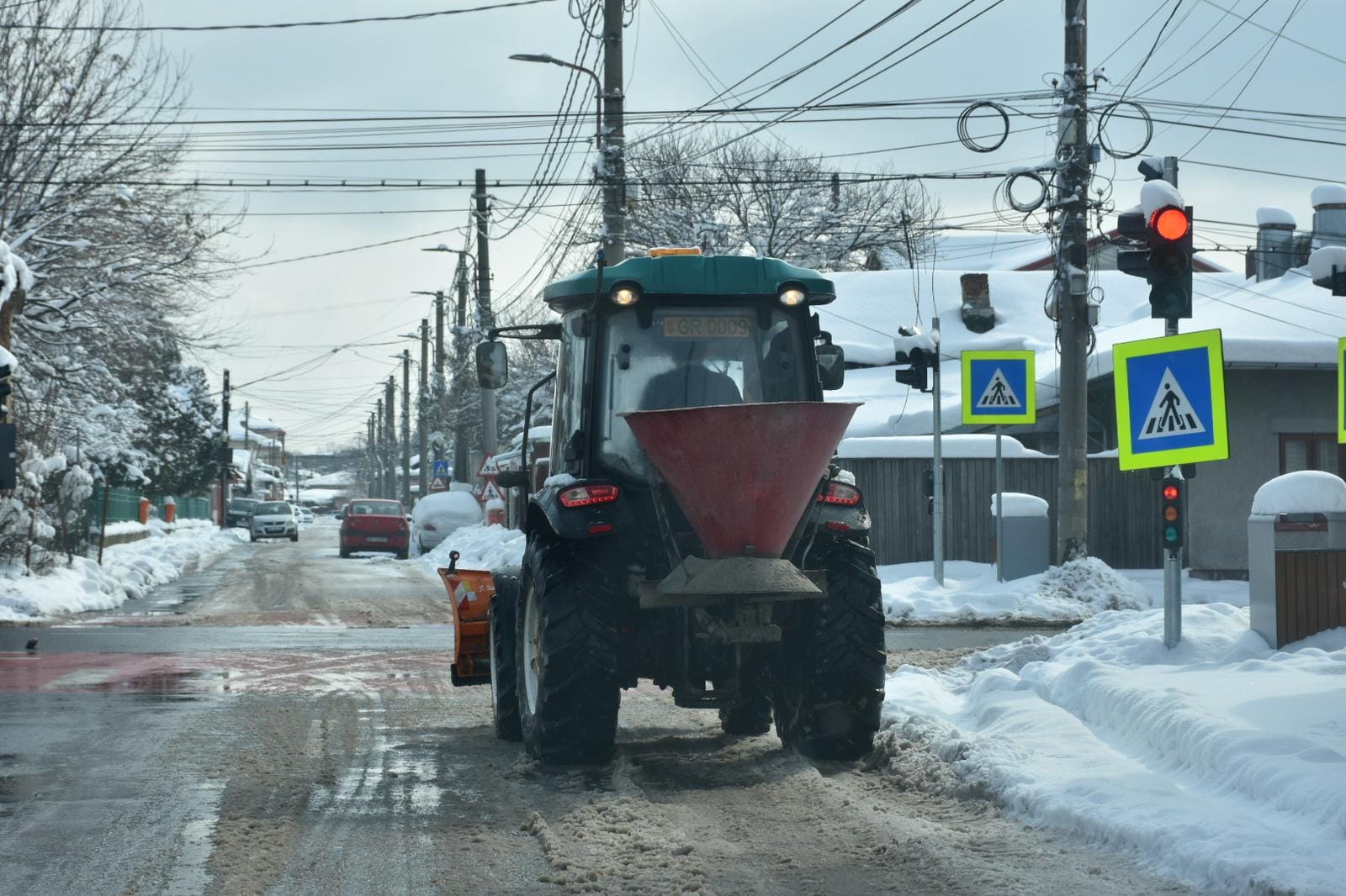 Menținerea temperaturilor negative impune ca activitatea de împrăștiere a materialului antiderapant pe străzile din muncipiu să fie continuată.