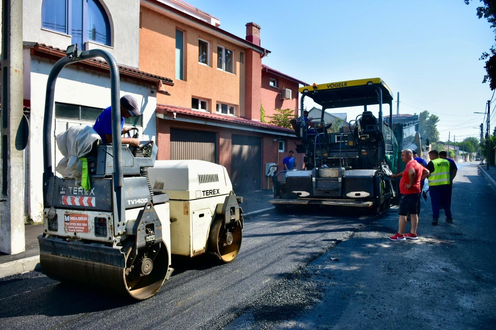 Astăzi a fost așternut stratul de uzură pe strada Dunării, tronson – intersecția Parcului,