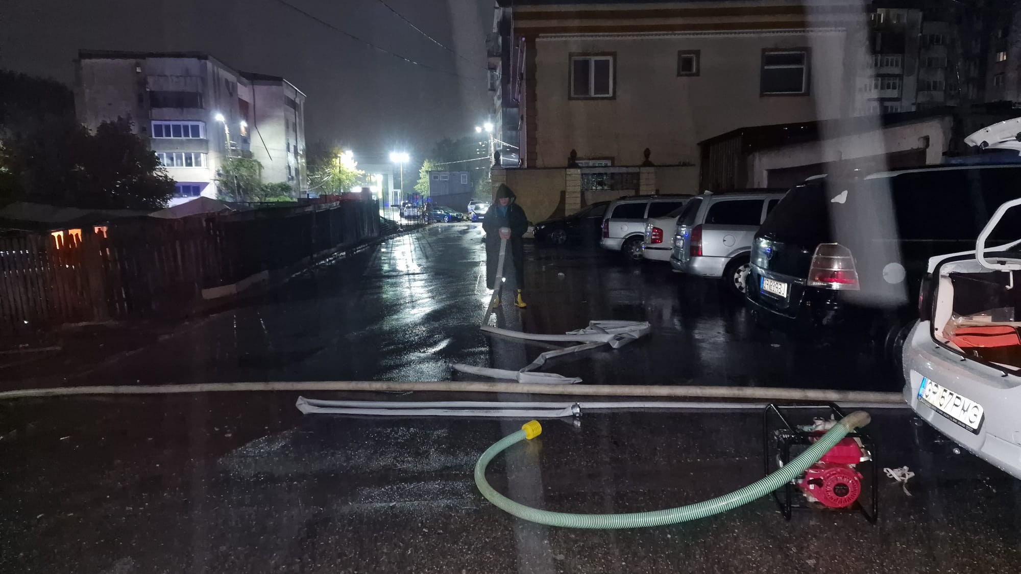 Astfel, începând de marți, 7 octombrie ora 22:00, până în dimineața zilei de 8 octombrie, angajații SVSU au acționat cu motopompă pentru evacuarea apei din curțile situate pe ulița Vidra și străzile Rozelor și Pietrelor.